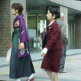 This photograph is taken at a graduation ceremony of a junior college. Many boys wear these dresses.