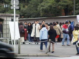 入試が行われる各教室に男子は一人程度でしょうか。女子ばかりの教室の中、一人だけ背が飛び抜けていて、周りの受験生から注目されている事に少し戸惑っているようです。